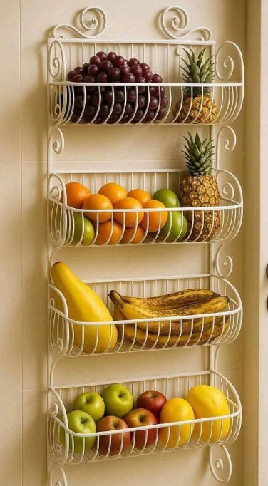 4-Tier Wall Mounted Fruit & Vegetable Basket Rack