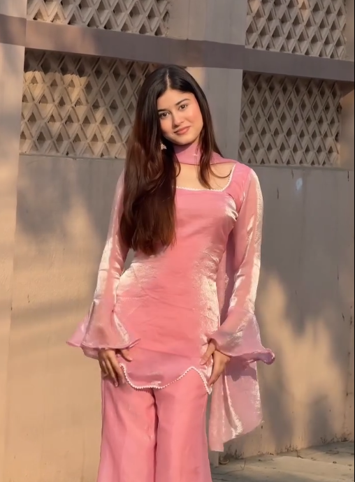 Crafted from soft, premium velvet-finish fabric, this pink kurti set offers a subtle sheen that enhances its luxurious appeal. The fabric drapes gracefully on the body, providing both comfort and sophistication. Its smooth texture feels gentle on the skin, making it suitable for long hours of wear during festivals, family gatherings, or evening events.