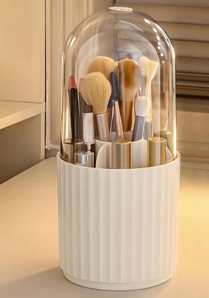 Keep your beauty essentials clean and organized with this stylish dustproof makeup brush holder. Featuring a sleek ribbed base and a clear dome lid, it protects your brushes from dust and moisture while adding a modern touch to your dressing table. Perfect for storing makeup brushes, lip liners, and small beauty tools, this compact organizer is ideal for Indian homes that value both hygiene and elegance in their vanity setup.