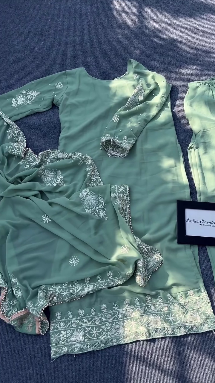 If you’re searching for a graceful embroidered salwar suit, a stylish festive ethnic outfit, or a soft pastel Indian suit set, this sage green embroidered ensemble is the perfect choice. It offers timeless appeal, premium craftsmanship, and versatile styling—making it a must-have for every woman who loves understated elegance in ethnic fashion.