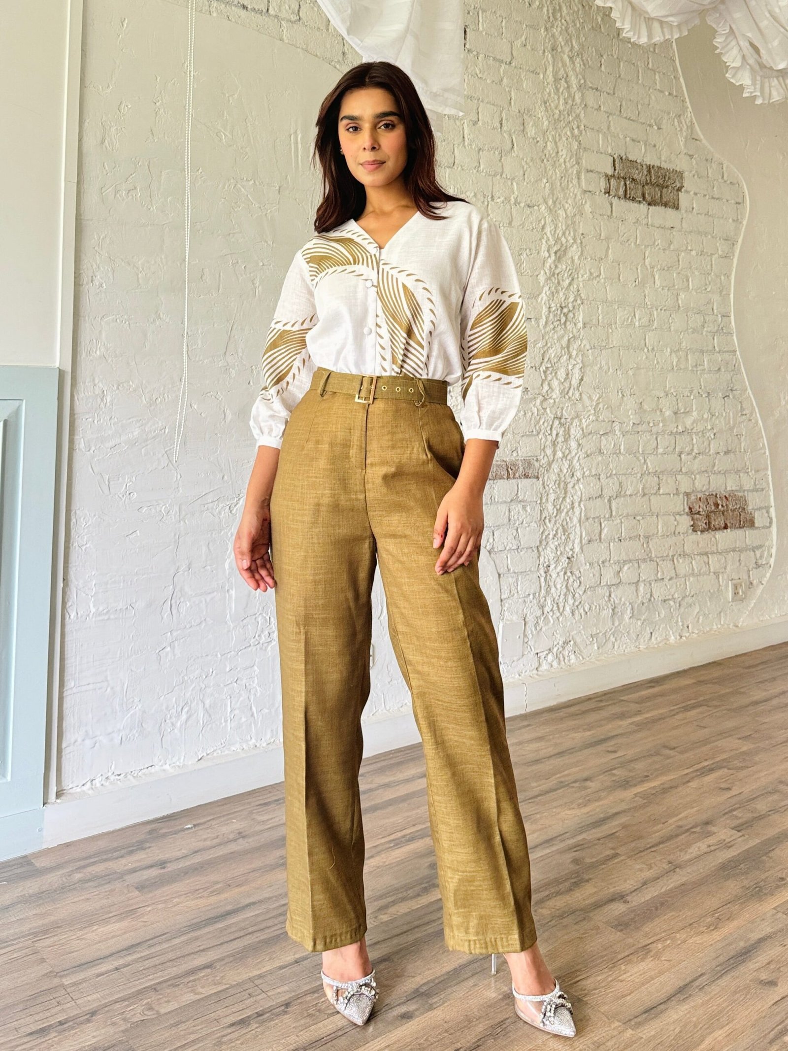 Stylish Two Tone Summer Formal Linen Co-ord Set in a minimal print and stand out color combination for a perfect Summer Formal Look.