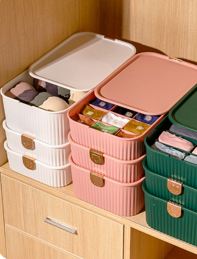 Keep your space neat and organized with this stackable storage organizer box. Designed with a secure lid and durable structure, it helps store clothes, towels, toys, accessories, and other household items while saving space. The stackable design allows multiple boxes to be placed neatly on top of each other, making it perfect for wardrobes, closets, shelves, and cabinets.