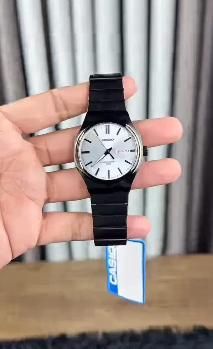 A sleek analog wristwatch featuring a minimalist white dial with clean hour markers and a sturdy black strap. The simple yet refined design makes it suitable for everyday wear as well as formal occasions. Lightweight and versatile, it adds a timeless touch to any outfit.
