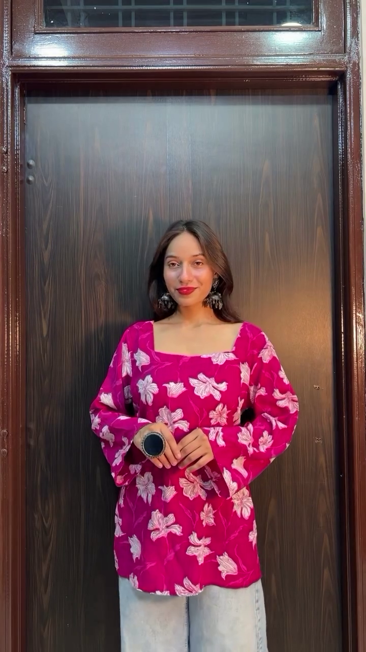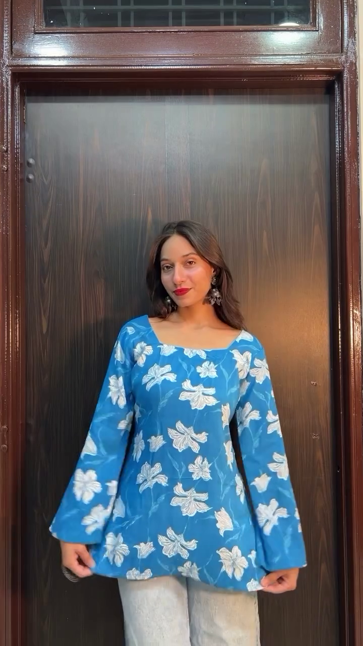 Upgrade your everyday wardrobe with this elegant women’s blue floral printed tunic top, designed to bring effortless style and comfort to your casual and semi-casual outfits. Featuring a refreshing blue base with soft white floral prints, this top creates a charming and feminine look that works beautifully for day outings, brunches, office wear, or casual gatherings.