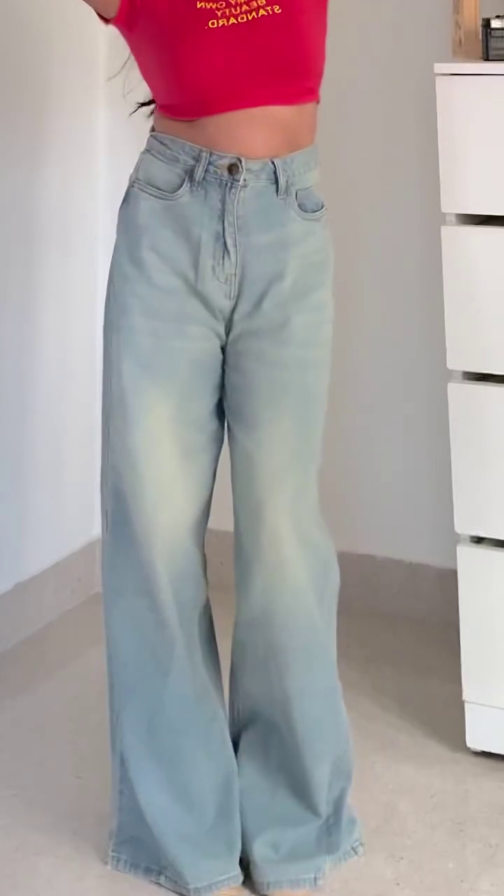SEO-optimized keywords such as women wide-leg jeans, high-waist denim jeans, light blue jeans women, relaxed fit jeans, vintage wash jeans, casual denim pants, streetwear jeans women, Y2K wide-leg jeans, everyday denim wear help boost online visibility and search performance.