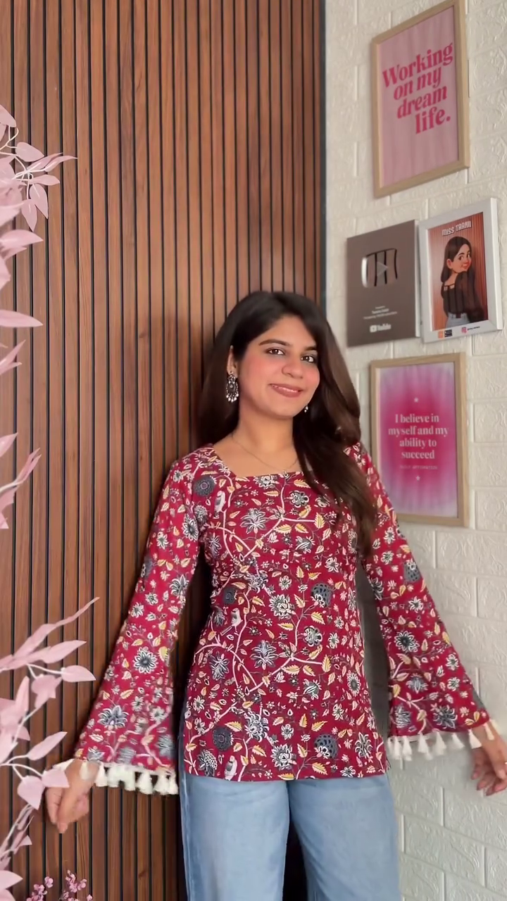 From an SEO standpoint, this product is optimized with high-intent keywords such as women’s kurti top, floral printed kurti, maroon kurti for women, ethnic tops for women, casual kurti top, bell sleeve kurti, women’s fusion wear, Indian ethnic top, and daily wear kurti. These keywords help improve visibility across search engines and e-commerce platforms, ensuring customers can easily find this stylish piece.
